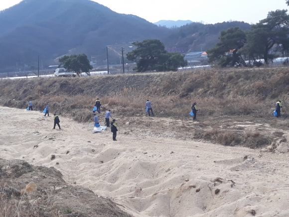 다짐 대회 후 남면 옥산천내 자연보호를 하면서 Happy together운동에도 동참하였다
