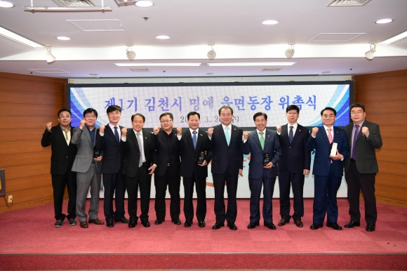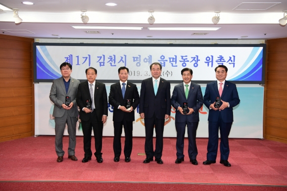 | 김천시는 지난 3월 20일 시청 2층 회의실에서『김천시 명예읍면동장 위촉식』을 갖고 명예 읍면동장으로 선정된 6명에게 위촉장을 수여했다.