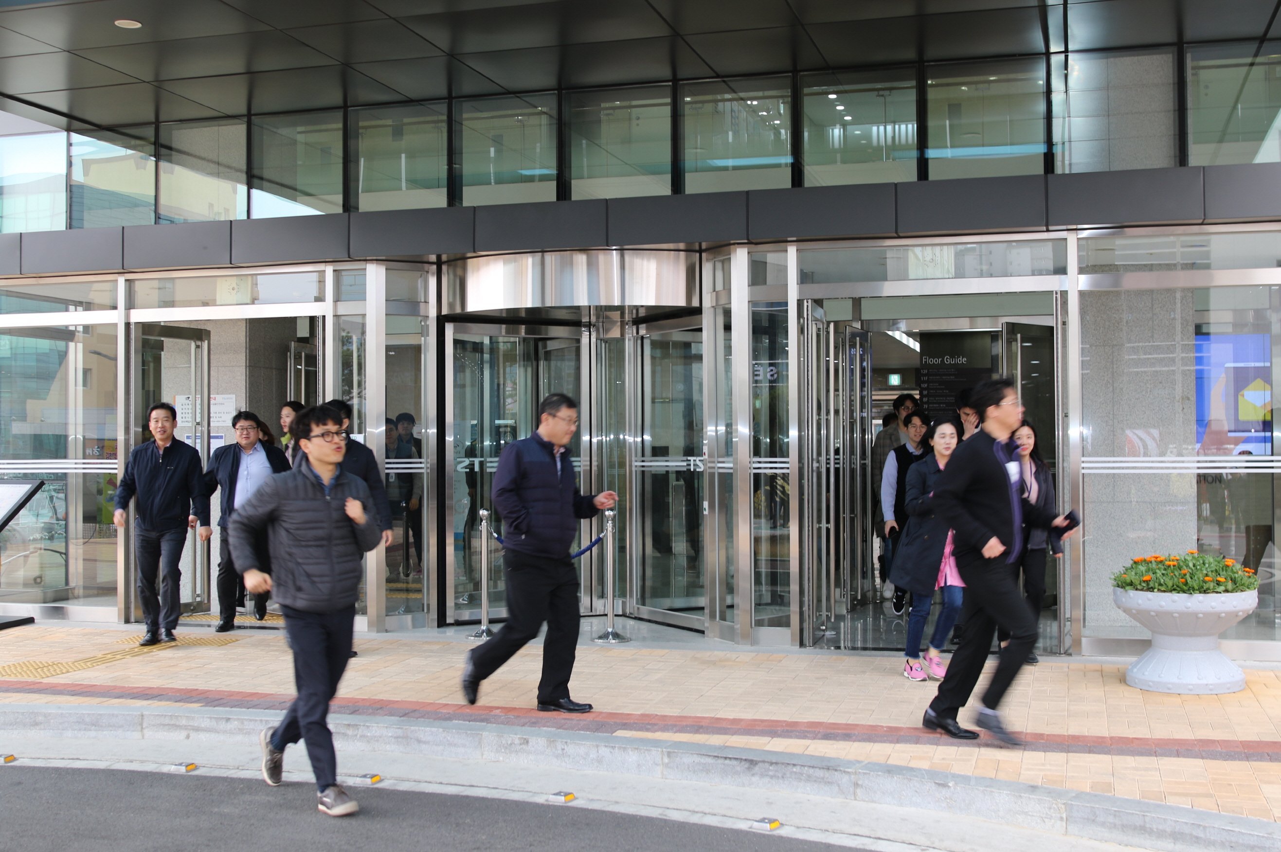 이번 민·관 합동소방훈련은 교통안전공단 주관으로 실시되었으며, 원인 미상의 화재 발생상황을 가정하여 화재 초기 시 인명대피 유도와 소화기, 옥내소화전 등을 사용하는 자위소방대 역할 중심의 훈련이었다.
