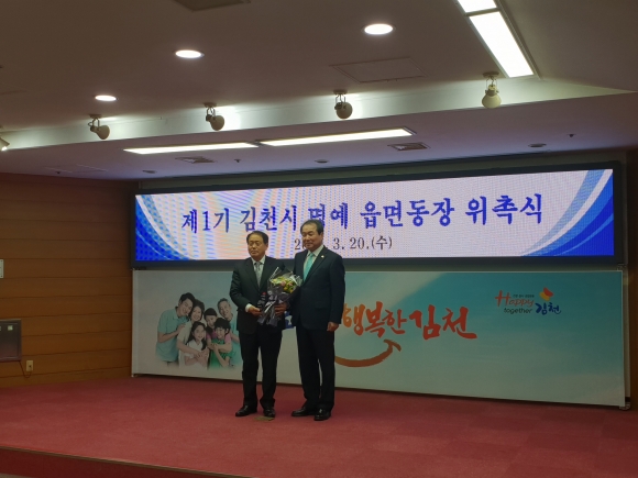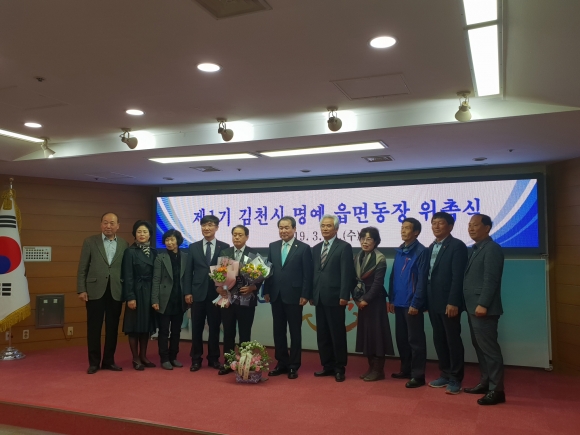 | 지난 3월 20일 김천시청 2층 회의실에서 기관 및 사회단체장 등이 참석한 가운데 명예 읍면동장 위촉식을 가졌다.