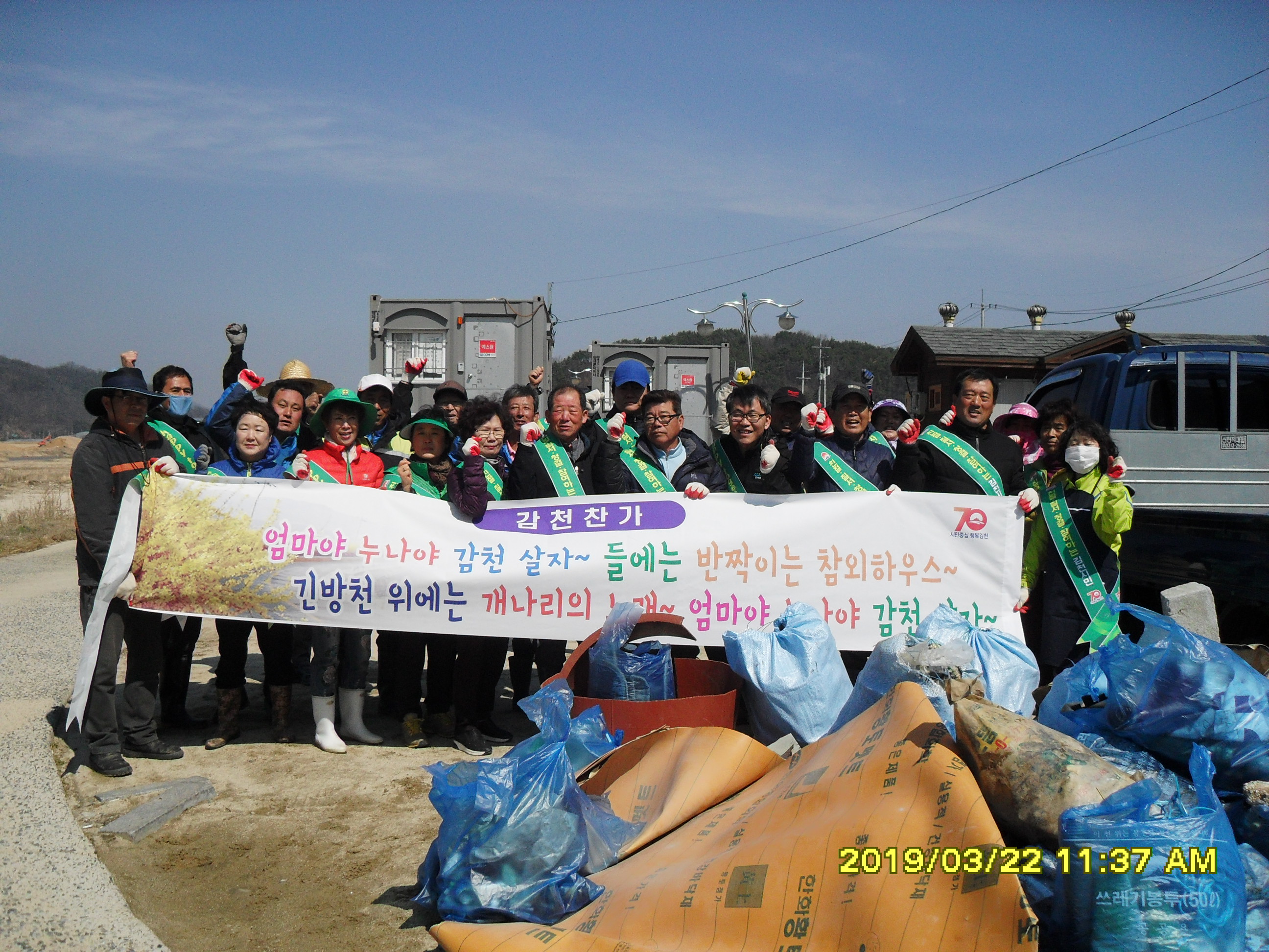 이날은 바람이 많이 부는 꽃샘추위에도 불구하고, 감천면 발전협의회 회원들과 김천석 감천면장이 함께 참여하여 금송리 긴방천 구석구석에 버려진 각종 생활쓰레기를 일제히 수거하고 재활용이 가능한 쓰레기는 분리하여 흐드러지게 곱게 핀 개니리가 전하는 봄의 향기를 만끽할 수 있는 청결한 감천면 만들기에 구슬땀을 흘렸다. 또한, 우리시 15만 인구회복의 의지가 담긴 “감천찬가”를 함께 가슴에 새기며 김천愛 주소갖기 운동 의지를 다짐하는 의미있는 시간을 보냈다.