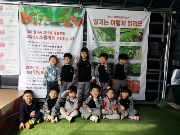 원아들은 버스를 타고 농장으로 가는 길의 산과 들에 핀 봄꽃들을 보며 봄의 정취를 한껏 느낄 수 있었다. 자연의 아름다움을 느끼며 딸기 농장에 도착한 원아들은 먼저 딸기가 자라는 과정과 딸기 따는 방법에 대해 알아보는 시간을 가졌다.