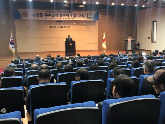 | 김천시(시장 김충섭)는 농산물에 대한 소비자의 신뢰를 확보하고 대외적 경쟁력을 강화하기 위한 농산물우수관리(GAP)교육을 농업인 400여명이 참석한 가운데 지난 3월 25일에 실시했다.