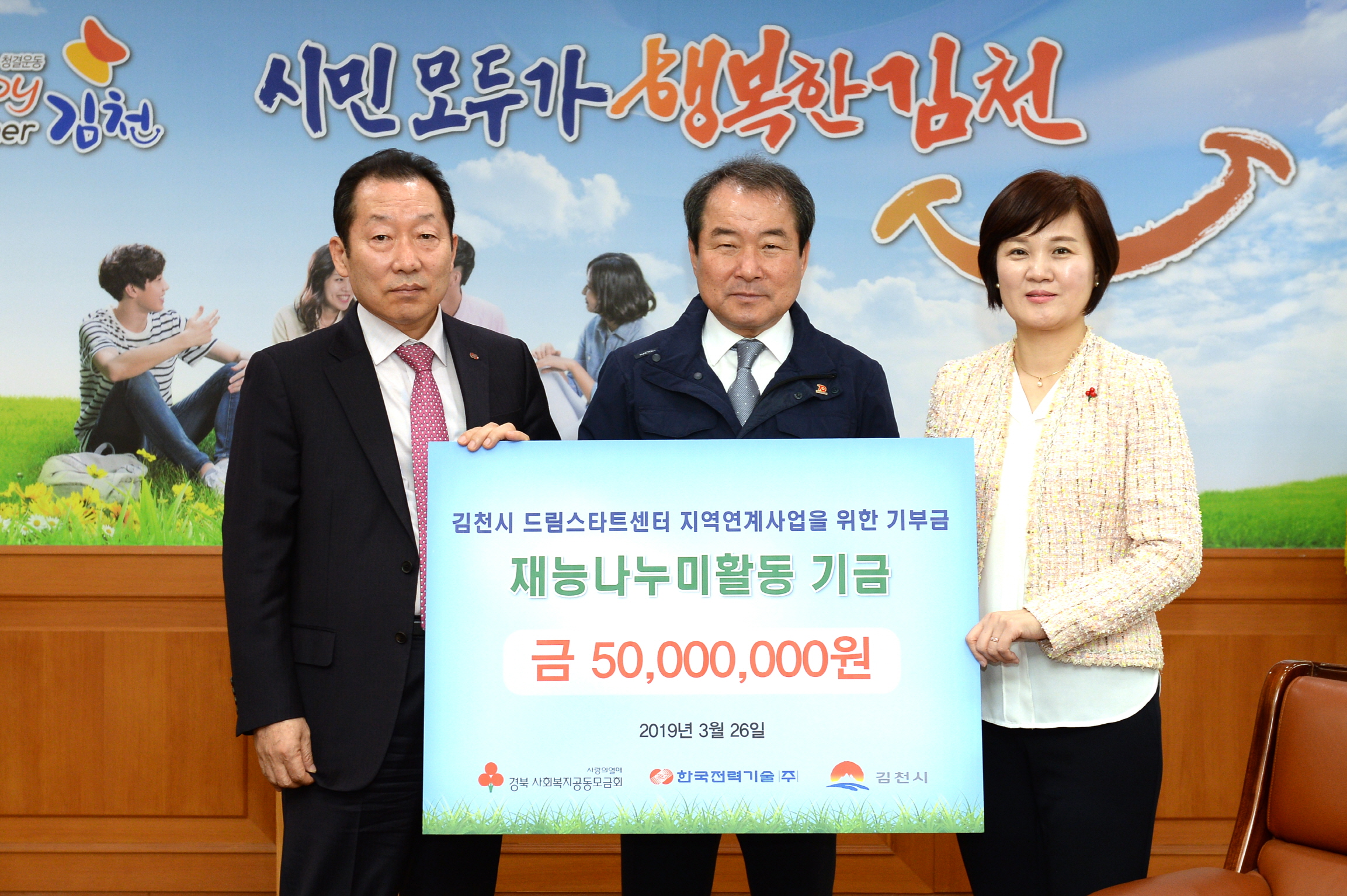 | 경북사회복지공동모금회(회장 신현수)는‘지난 3월 26일, 김천시청에서 한국전력기술이‘드림스타트 사업’에 후원금 5000만원을 경북사회복지공동모금회에 전달했다’고 밝혔다.