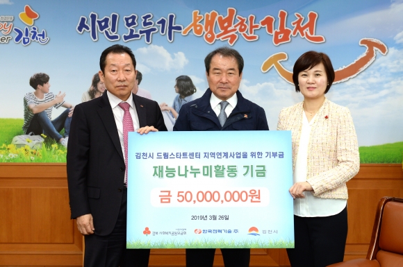 김충섭 김천시장은 “우리지역의 우수기관인 한국전력기술의 지속적인 후원과 관심에 감사하며, 드림스타트 아동과 가족들이 미래에 대한 꿈과 희망을 갖고 건강한 사회구성원으로 성장할 수 있도록 지원하겠다”고 하였다.