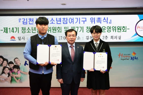 | 김천시(시장 김충섭)는 청소년의 권리증진과 정책참여 기회를 확대하기 위한“김천시 청소년참여기구”를 지난 3월 26일 출범하였다.