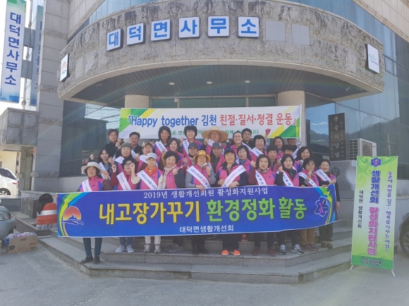 | 대덕면(면장 김종철)은 지난 3월 26일 생활개선회원 30여명이 참여하여 대덕면 관기·중산리 일대 감천변에서 Happy together 김천 청결 운동을 펼쳤다.