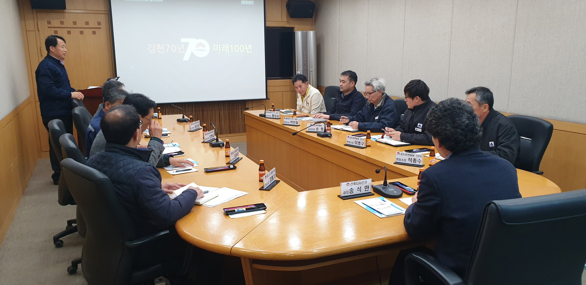 | 김천시(시장 김충섭)는 지난 3월 27일 봄철 해빙기를 앞두고 일어날 수 있는 안전사고를 사전에 예방하고자 관내 주요 대형건축사업장의 현장소장 및 감리단장을 대상으로 간담회를 개최하였다.