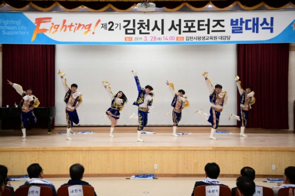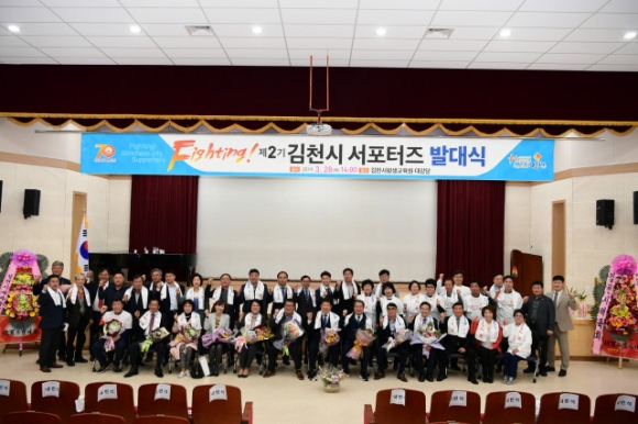 | 김천시에서는 지난 3월 28일 김천시 평생교육원 대강당에서 서포터즈 단원 300여명이 참가한 가운데 제2기『Fighting! 김천시서포터즈』 발대식이 개최되었다. 김천퓨전장구팀 공연을 시작으로, 결의문낭독, 회장단소개, 구미대학교 치어리더팀의 축하공연 순으로 진행되었다.