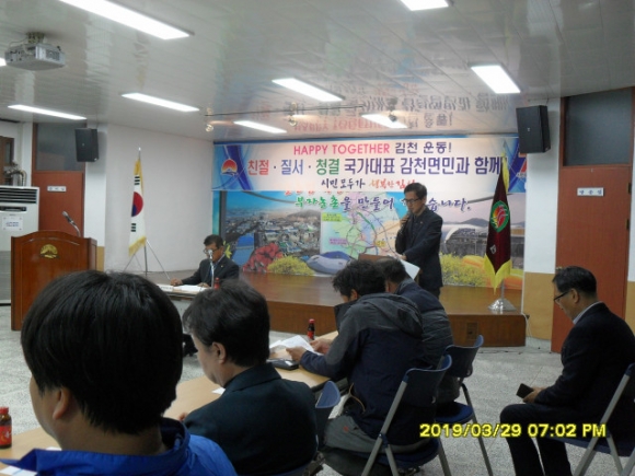 | 김천시 감천면 발전협의회(회장 김종화)는 3월 29일 감천면사무소 회의실에서 정기총회를 개최하였다. 관내 15개 단체 회장․총무로 구성된 감천면 발전협의회는 지역의 발전을 위해 당면 현안사항을 논의하고 2018년도 세입․세출 감사보고, 결산승인과 2019년 신임회원 인사, 회장단 선출등의 순서로 회의를 진행하였다.