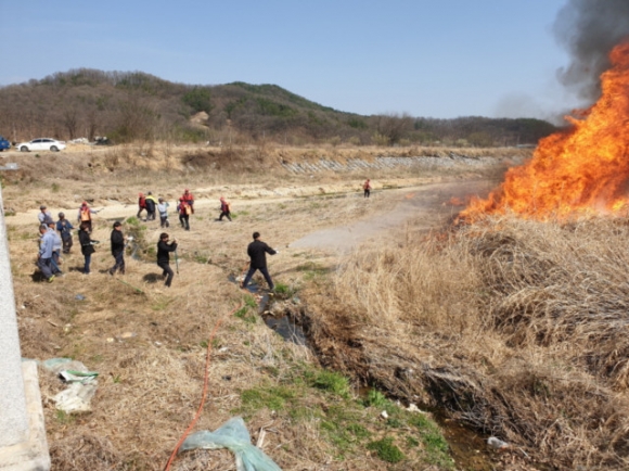 | 감문면(면장 김윤수)에서는 3월 29일 산불위험이 없는 happy together 감문면을 위하여 소재 인근 하천에서 산불기계화 장비 운용능력 제고와 산불발생시 초기 진화능력을 향상을 위한「산불진화 기계화장비 훈련·교육」을 직원 및 산불감시원 그리고 의용소방대, 김천소방서 아포119안전센터 직원 등 30여명이 참가하여 실시하였다.