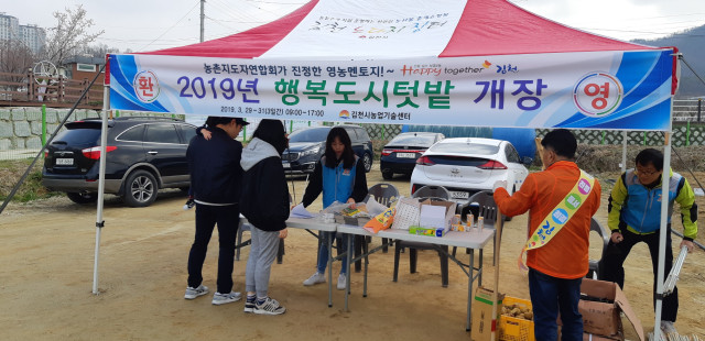 | 김천시(시장 김충섭)는 지난 3월 29일 농업기술센터 농장과 남면 옥산리에 위치한 혁신도시농장인 행복도시텃밭을 분양가족에게 지난해보다 보름 일찍 개장했다. 행복도시텃밭은 주말 휴식공간의 제공과 자연학습 체험공간의 장으로 활용하고자 혁신도시 이전기관 및 일반시민을 대상으로 지난 2월 농업기술센터 홈페이지를 통하여 온라인으로 신청 받아 추첨프로그램을 통해 분양자를 선정하였으며 늘어나는 농장 수요에 맞춰 지난해 210구획이었던 농장을 금년도 106구획을 신규 조성하여 총316구획을 세대당 1구획 15㎡정도의 규모로 분양하였으며 운영기간은 3월 29일부터 11월 30일까지이다.