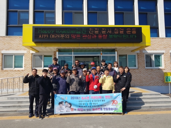 | 농소면 농업경영인회(회장 김경환)에서는 4월 6일~7일 양일간 개최될 「2019 김천 자두꽃 축제」를 맞이하여 지난 3일 새봄맞이 국토대청결 운동을 실시했다.