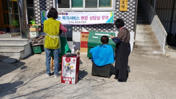 | 아포읍 맞춤형 복지팀에서는 보장협의체와 함께 오늘(4월4일) 대성2리 대증경로당에서 거동이 불편한 어르신들을 대상으로 하는 미용봉사를 진행했다.