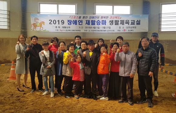 이번 재활승마교실은 지난 2월 경상북도장애인체육회에 『2019 장애인 재활승마 생활체육교실』을 프로포절하여 선정되었으며, 건전한 스포츠를 통해 건강증진과 친목을 도모하고 재활의지를 높여 장애인의 삶의 질을 향상시키는데 목적을 두고, 체육회로부터 도비를 지원받아 9월 말까지 매주 금요일 오후 2시간씩 김천승마장 이재우 지도자의 지도를 받으며 수업을 진행하게 된다.