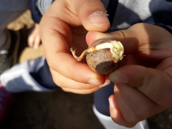 “도토리 찾았어요. 싹도 났어요.” 숲지도사 선생님의 안내에 따라 유아들은 나무 아래에서 싹이 난 도토리를 마치 보물처럼 소중히 다루며 관찰했다. 주운 도토리를 다시 땅으로 묻으며 “나무가 돼서 만나.” 라는 유아들의 말에서 자연을 사랑하고 아끼는 마음이 자라고 있음을 알 수 있었다.