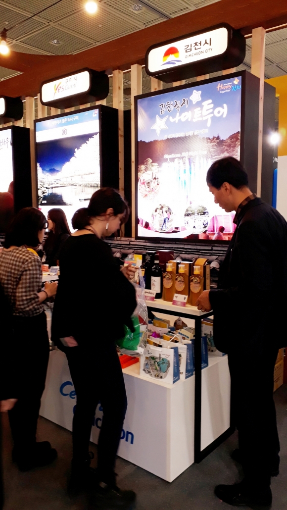 그 중 김천시는 야간테마 관광상품인 온 가족이 함께 즐기는 김천 직지나이트투어를 홍보하였다. 직지나이트투어 체험프로그램 중의 하나인 꼬마연등 만들기를 이번 박람회에서 체험 이벤트로 진행하면서 외국인과 가족단위의 관람객들에게 큰 호응을 받았다. 그리고 최근 새로운 관광명소로 부상하고 있는 부항댐 짚와이어, 스카이 워크, 출렁다리 홍보와 함께 가수 보나의 ‘김천로맨스’가 경상북도 홍보관 운영 시 배경음악으로 재생되어 더욱 더 흥겨운 분위기를 고조시켰다.