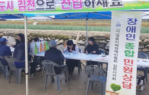 | (사)경북지체장애인협회 김천시지회(지회장 박희만)는 지난 4월 10일 오전 10시부터 대덕면 대산농협에서 장애인 이동상담 및 카툰전시회를 실시하였다. 이날 이동상담은 “김천시 찾아가는 현장민원실”의 일환으로 대덕면에 거주하는 주민들을 대상으로 진행되었다.