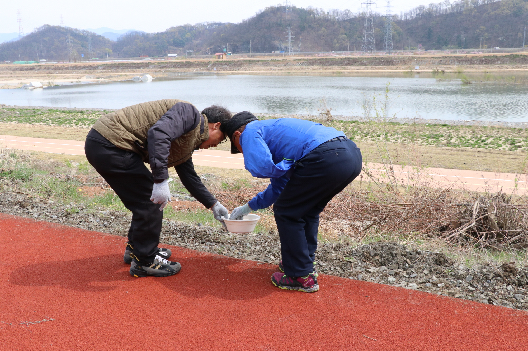 40여명의 회원들은 복지관 구내 심어진 장미 50여 그루를 비롯한 진달래, 매화 등 화초에 비료를 주었다. 또한 방천길에 있는 쓰레기를 치우고 잡초를 제거한 후 코스모스 씨앗을 뿌리는 등 복지관 내·외를 정성들여 가꿨다.