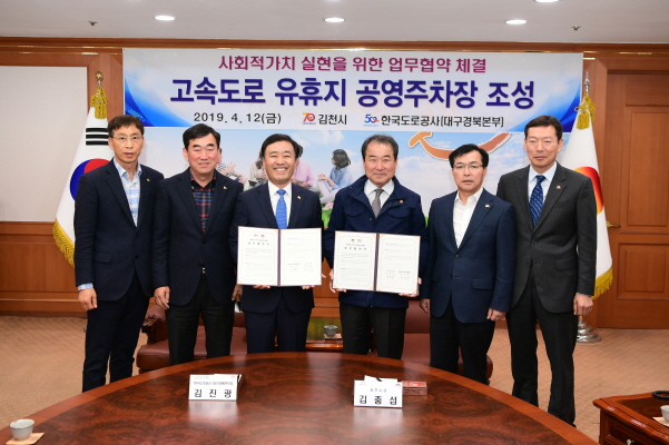 |  | | | ⓒ 김천내일신문 | | 김천시와 한국도로공사(대구경북본부)는 고속도로 유휴지를 활용한 공영주차장 조성을 위해 지난4월 12일 김천시청 접견실에서 업무협약을 체결하였다. 공영주차장은 교동의 구)고속도로 진출입로 부지로 면적은 6,423㎡이며, 한국도로공사(대구경북본부)는 부지를 무상 제공하고, 김천시는 사업비 5억원을 투자하여 주차면수 63대(화물자 18, 승용차 45)을 설치하여 금년 7월에 준공을 계획하고 있다. 공영주차장 조성을 계기로 외지에서 오는 화물차의 주차편의를 제공하여, 주택지 주변 주차로 인한 민원예방 및 주차난 해소에 다소 기여할 것으로 기대된다. 김진광 대구경북본부장은 “금년은 한국도로공사 창립 50주년, 김천시 승격 70주년의 뜻 깊은 해를 맞아 지역의 대표 공기업으로서 지역사회 기여 및 사회적 가치 실현을 위해 많은 노력을 기울여 나갈 계획이다”라고 밝혔다. 한편, 김충섭 김천시장은 “지역사회를 위해 많은 노력에 감사드리며, 김천 발전을 위해 시와 한국도로공사가 서로 협력하여 공기업의 이미지 제고 및 시민들의 삶의 질 향상에도 기여하여 시민 모두가 행복한 김천을 만들어 나가는데 협력하여 줄 것을 당부드린다.”고 하였다. |