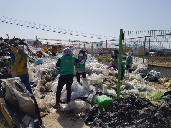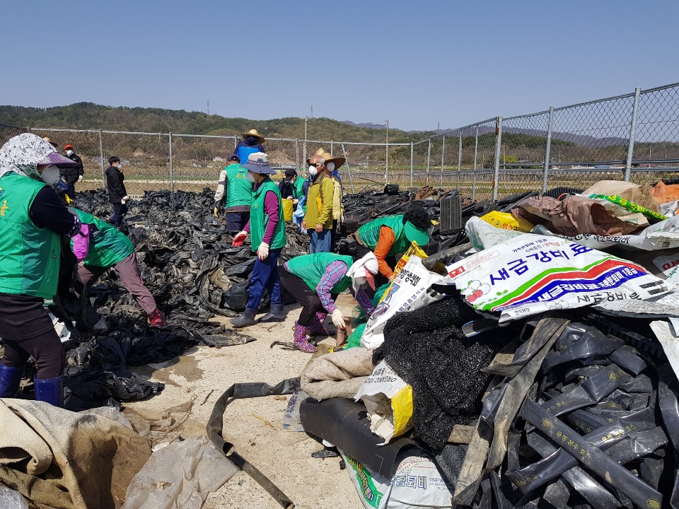 비닐하우스 등 논밭에서 발생된 영농폐비닐이 흙, 돌 등 이물질들이 제거되지 않고 재질과 색상별로 분리되지 않은 채 무단 투기되어 마을폐비닐수집장에 방치되어 있어 미관저해는 물론 환경오염 유발에 따른 특단의 조치로 조마면 새마을협의회가 나섰다.