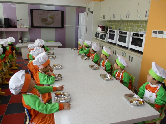 유아교육체험센터에 도착하여 체험전담사의 주의사항과 설명을 들은 후, 연령별로 다양한 체험을 실시하였다. 1층 「지글보글쿡쿡」 요리영역에서는 ‘마시멜로 과일꼬지’ 만들기 요리활동을 하였다. 유아들은 멋진 요리사 복장을 갖춰 입고, 요리에 사용되는 재료들을 탐색하며 과일 꼬지 만드는 순서에 대해 알아보았다. 유아들은 선생님의 지도에 따라 즐거운 요리활동에 참여하였다. 과일꼬지를 만든 한 유아는 “요리 활동 진짜 재미있었어요. 집에서도 만들어 볼 거예요”라며 즐거워했다.
