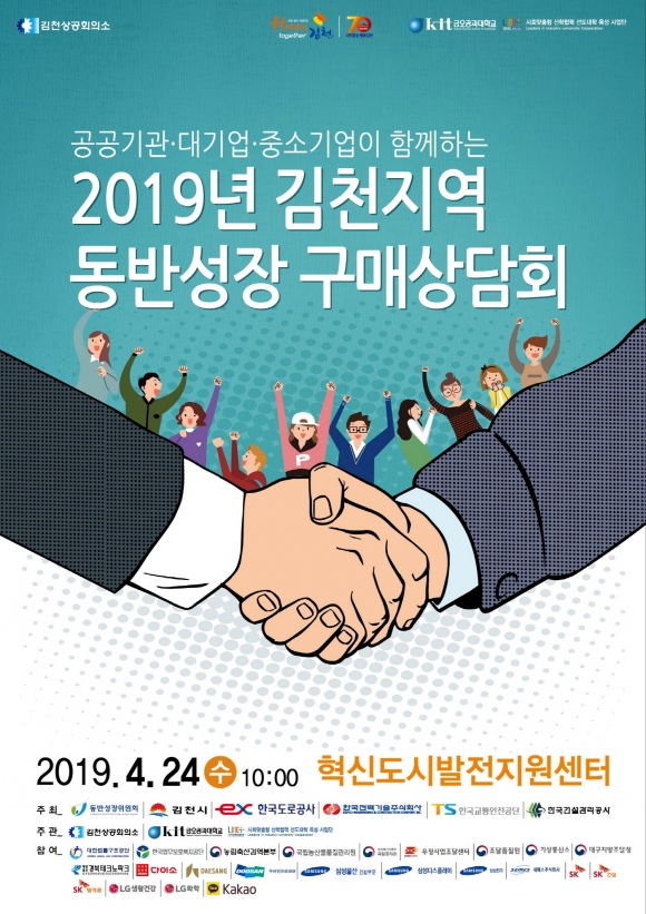 | 김천시는 오는 24일, 혁신도시발전지원센터(구. 산학연유치지원센터)에서 ‘공공기관ㆍ대기업ㆍ중소기업이 함께하는 2019년 김천지역 동반성장 구매상담회’를 개최한다고 밝혔다.