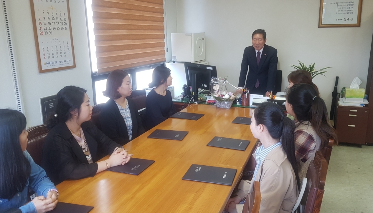 | 김천시(김천시장 김충섭)는 4월 22일 시청 행정복지 국장실에서‘2019년 어린이집 부모 모니터링단’위촉식을 가졌다.