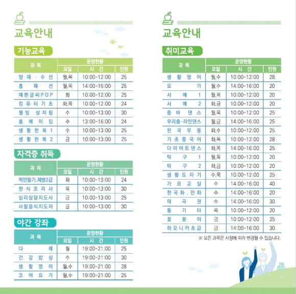 시민들의 여가선용 및 잠재능력 계발을 위한 수강신청 쇄도