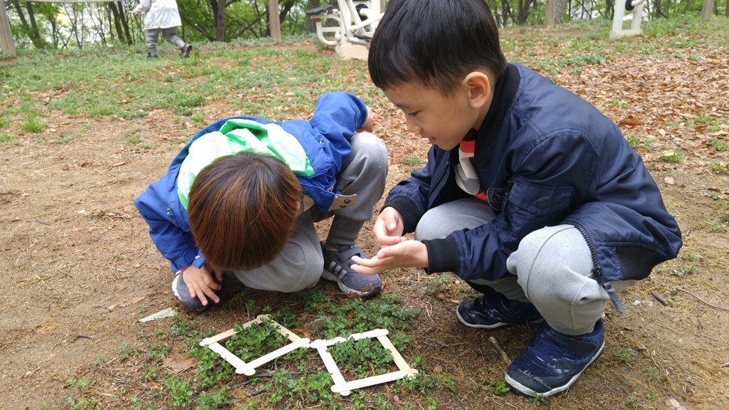 김천시에서 운영하는 김천 유아숲체험원에서 실시한 4월 숲 체험 활동은 풀꽃 액자를 주제로 풀․꽃을 관찰하고 작은 나무 액자로 풀, 꽃, 하늘 등을 액자 속에 넣어서 나만의 자연 액자를 만들기 활동을 하였다. 유아들은 “와~ 구름이 내 액자 속에 있어요.”, “노란색 꽃이랑 풀이랑 친구해서 예쁘게 사진 찍어 주고 싶어요.”하며 자연의 아름다움을 느꼈다. 또한 통나무 징금 다리 건너기, 숲속 나무 그네 타기, 미로 지나기 등 자연과 하나 되는 놀이로 유아들은 함박웃음을 지으며 더 큰 기쁨을 맛보았다.
