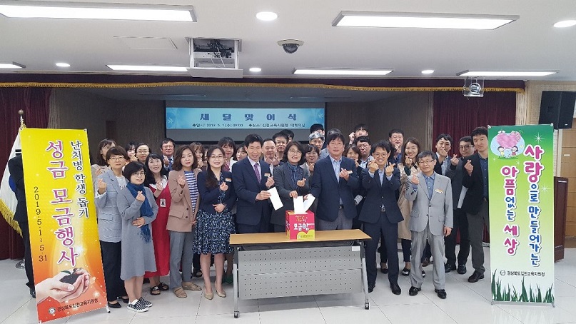 | 경상북도김천교육지원청(교육장 마숙자)은 5월 1일, 전 직원이 참여하는 2019 난치병 학생 돕기 성금모금 행사를 개최하였다.