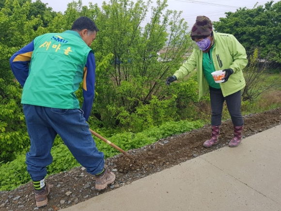 | 지난 4월 30일, 감문면 새마을협의회(지도자회장 박갑용, 부녀회장 강인희) 회원 50명은 연도변 환경정비의 일환으로 배시내 감천 제방 둑길 양쪽에 코스모스 씨앗을 파종했다. 이로 인해 올가을 1.2km여 정도 되는 둑길이 알록달록한 코스모스로 수놓여 가을의 기운을 만끽할 수 있을 것으로 기대된다. 작년에 삼성리 일대 유휴지에 다년생풀인 패랭이꽃을 식재하여 올해 봄꽃 심기 장소를 물색하던 중, 감천 재해예방 공사로 정비된 배시내 제방에 코스모스 식재를 원하는 주민들 의견을 수렴해 파종하게 됐다.