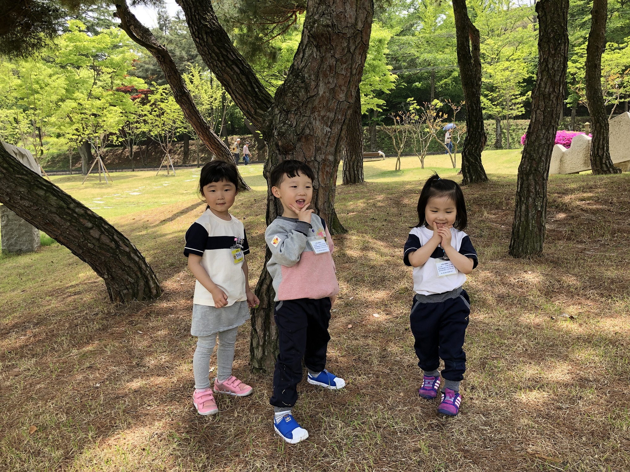 김천직지문화공원에 도착해서 먼저, 유아들은 공원의 초록빛깔 나무들을 보면서 봄을 느낄 수 있었다. 하얗고 붉은 철쭉꽃과 푸르른 나무를 보면서 자연의 여러 가지 색을 관찰하고 봄 향기를 느꼈다.