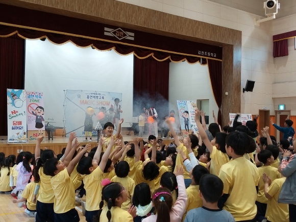 3~4교시는 재미있고 교육적인 마술 공연이 있었다. 마술 공연의 주제는 흡연예방교육활동과 연계하여 진행을 하였다. 화려한 볼거리와 재밌는 마술 쇼를 통하여 학생들은 흥미를 가질 수 있었고 흡연예방의 중요성도 깨달았다.