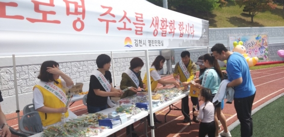 지난 5일 성황리에 끝난 제24회 김천어린이날 큰잔치 행사에 참석한 어린이와 부모님들에게 〃우리집 주소는 도로명주소로“라는 문구가 새겨진 도로명주소 홍보물(캐릭터 연필)을 나누어 주어 뜨거운 호응을 얻었고, 미래의 주역인 어린이들에게 우리집 도로명주소가 무엇인지 알 수 있는 기회를 제공하였다.