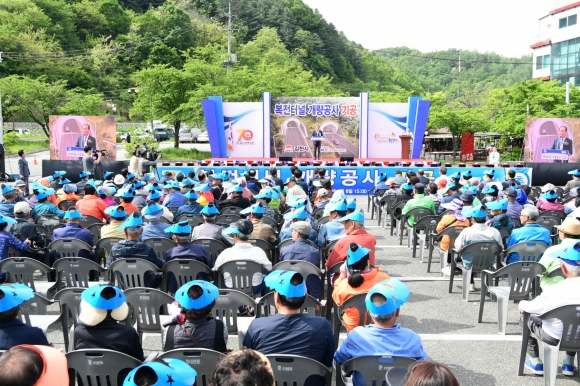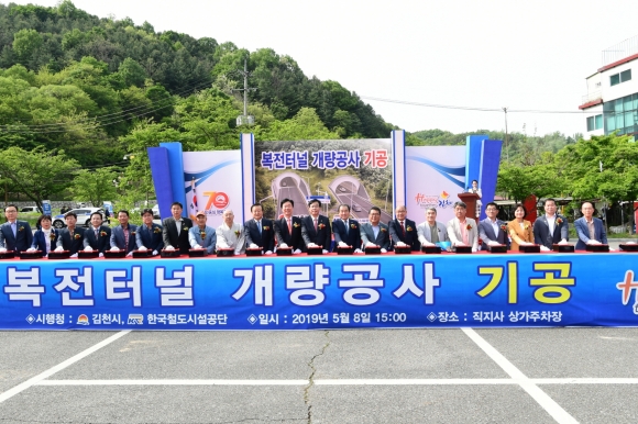 | 김천시(시장 김충섭)는 지난 5월 8일 지역민들의 오랜 숙원사업인 복전터널 개량사업의 착공을 축하하는 기공식 행사를 가졌다.
