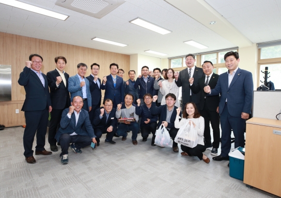 | 장경식 경북도의회 의장은 포항출신 도의원들과 함께 5월 8일 포항 용흥중에 새로 자리한 경상북도 환동해지역본부를 찾아 이사준비로 바쁜 직원들을 격려했다.