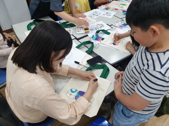 프로그램 참여아동들의 높은 호응 속에 진행된 첫 수업인 에코백 만들기를 진행하면서 아동과 봉사자들의 웃음으로 시간이 어떻게 흘러가는 지도 몰랐다. 아동들은 봉사자들과 함께 학교에서 있었던 일, 친구들 얘기도 하며 즐거운 시간을 보내고, 헤어질 때는 서로 아쉬워하며 목요일이 빨리 왔으면 좋겠다고 하였다.