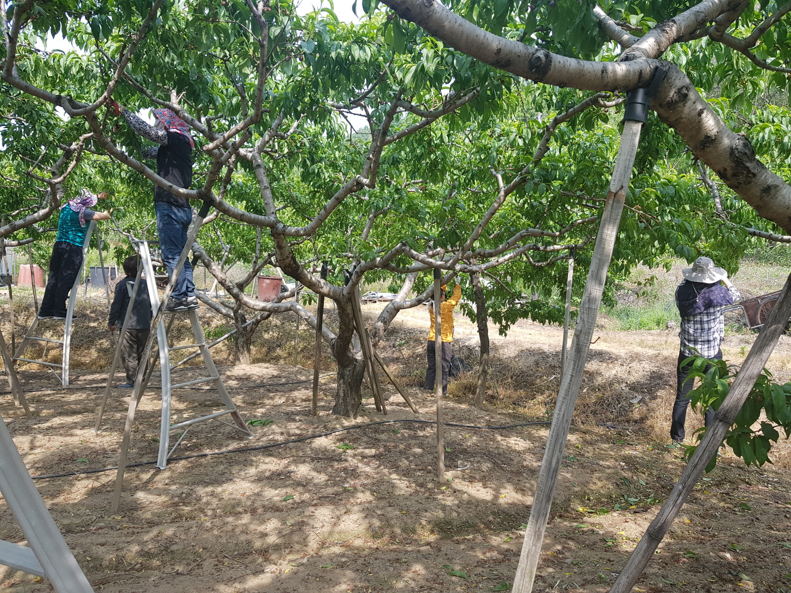 이날 직원들은 바쁜 업무를 뒤로하고 이른 아침부터 약 2,800㎡의 복숭아밭에서 적과작업을 실시하였다.