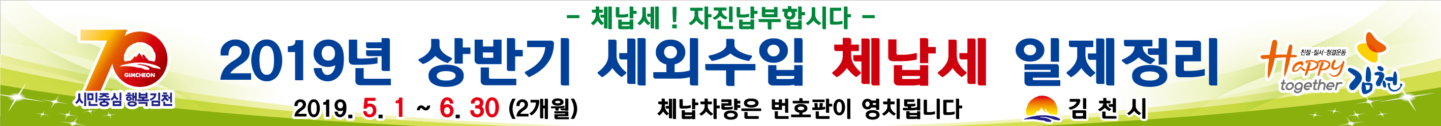 | 김천시(시장 김충섭)는 “상반기 세외수입 체납액 일제정리”기간을 5월 1일부터 2개월간 설정 운영하여 신규 체납액 발생을 줄이고, 특히 세외수입 총 체납액(57억원)의 73%를 차지하는 자동차 과태료 등 세외수입 체납액 징수를 위해 행정력을 총 집중한다.