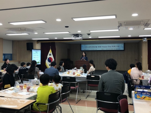 | 경상북도김천교육지원청(교육장 마숙자) Wee센터는 5월 16일 김천교육지원청 직원 및 가족들을 대상으로 가족 관계 향상을 위한 “Happy Day”프로그램을 실시하였다.