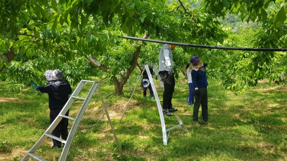이날 열린민원실 직원 10명은 더운 날씨에도 아랑곳하지 않고 약 1,000㎡의 자두과수원에서 농가에 조금이라도 보탬이 되었으면 하는 바람으로 열매 솎기 작업에 구슬땀을 흘렸다.