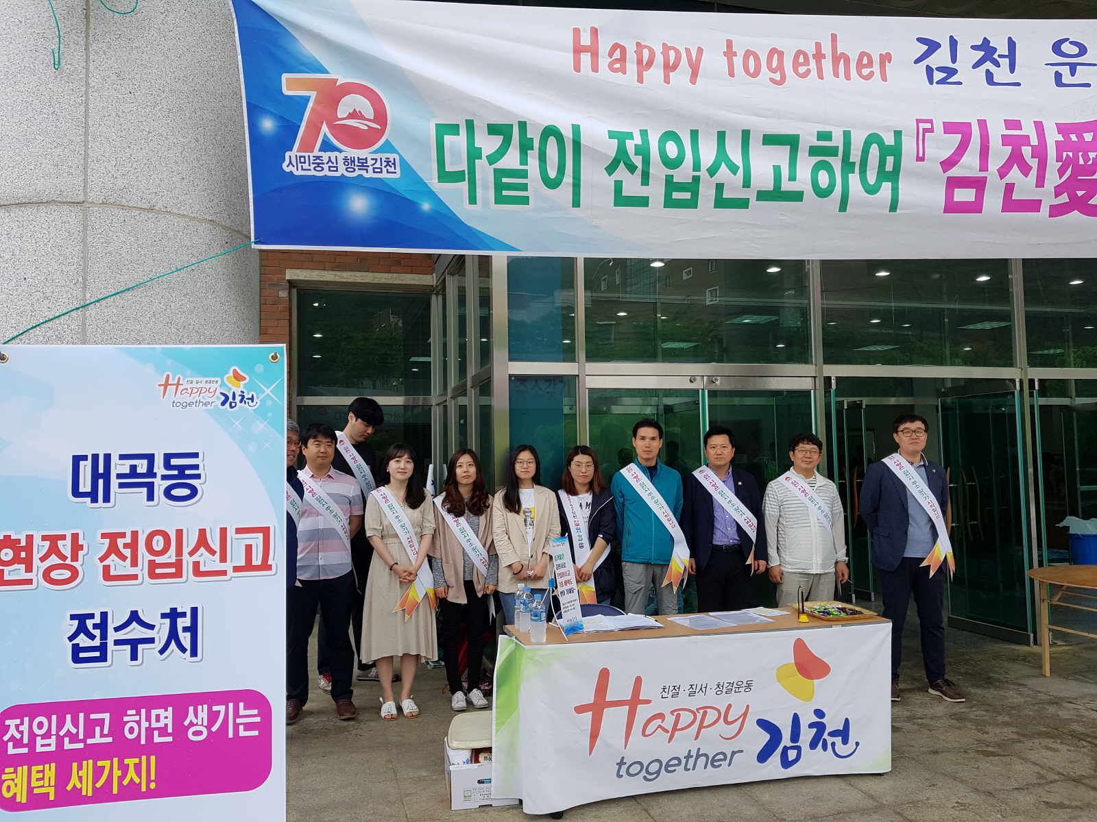 | 대곡동에서는 『김천愛 주소갖기 운동』의 일환으로 5월 18일에 개최 된 김천고등학교 한마음체육대회에서 현장전입반을 운영했다. 이날은 다소 많은 비가 예고되어 대회진행에 일부 난관이 예상됐지만 그럼에도 불구하고 학생과 학부모 모두 열성적으로 임하여 김천고의 뜨거운 열기를 실감케 했다.