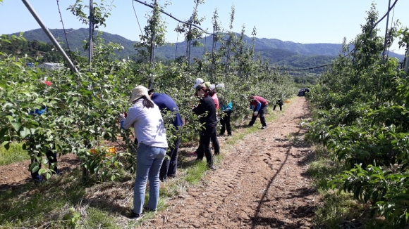 이번 농촌일손돕기는 아포읍 금계마을 사과 재배농가의 과수적과 작업으로 내 자식같은 마음으로 과실을 하나하나 어루만지며 작업을 하였고, 농가와 함께 작업을 하면서 농삿일의 어려운 점 등을 소통하고 공감하며 농촌현장도 체험하는 값진 시간이 되었다.