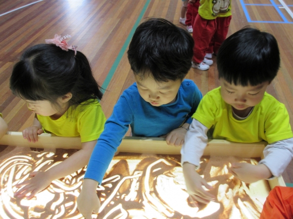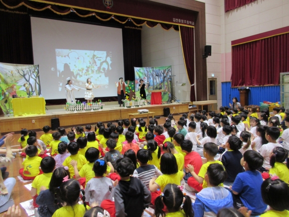 | 정성・존중・협력으로 미소 짓는 행복학교, 김천중앙초등학교 병설유치원(원장 백승호)은 지난 21일, 김천중앙초등학교 평화관에서 샌드아트 뮤지컬 공연을 관람하였다.