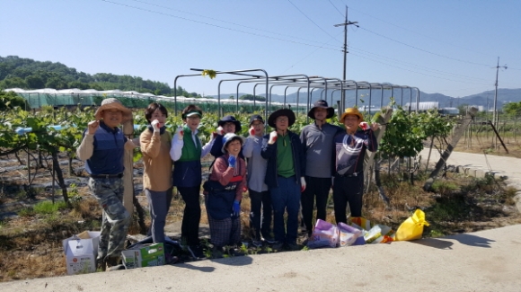 - 포도비가림 비닐씌우기에 구슬땀 흘려 -
