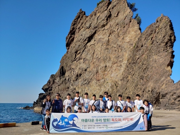 | 김천교육지원청(교육장 마숙자)은 5월 23일부터 5월 25일까지 2박 3일 동안 관내 중학생 및 교원 21명을 대상으로 독도 체험 탐방을 실시하였다. 이번 독도 탐방에는 관내 중학교에서 추천된 독도지킴이 대표 학생과 지난 4월 17일 김천교육지원청 주최 독도골든벨 행사에서 입상한 우수 학생 및 지도교사가 참가하였다.