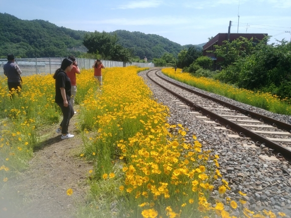 어모면 아천역 철로변 금계국 만개