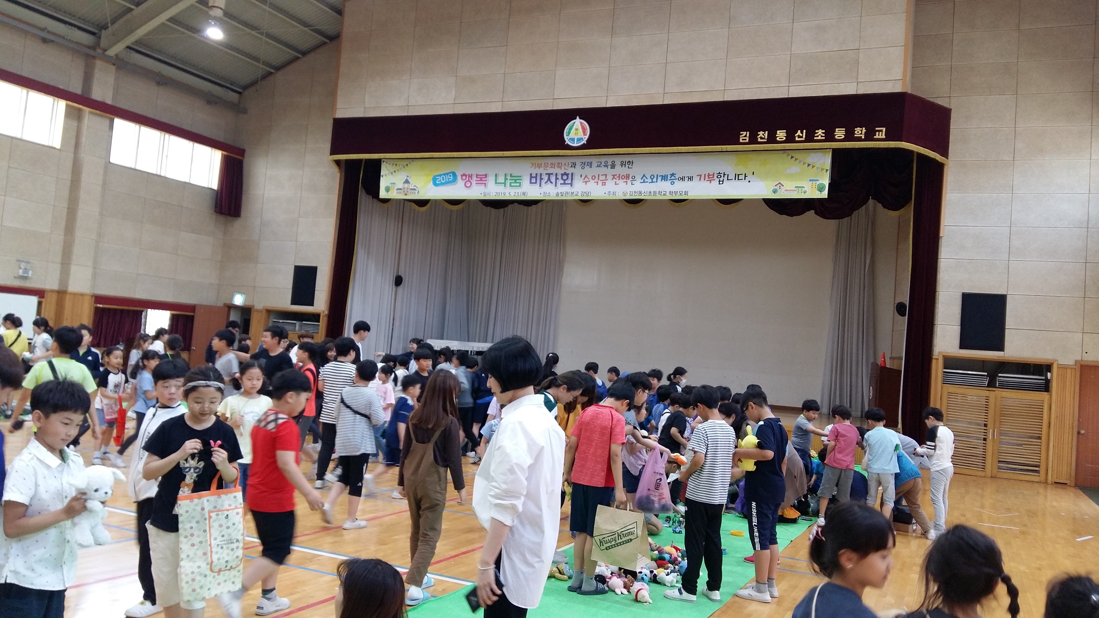 | 김천동신초등학교(교장 이형석)은 5월 23일 솔빛관(강당)에서 「행복 나눔 바자회」를 개최하였다. 「행복 나눔 바자회」는 김천동신초등학교 전교생이 자신이 사용하지 않는 물건들을 기증하였고 학부모회 어머니들께서는 기증한 물건들을 분류하고 정리하셔서 행복 나눔 바자회를 준비해 주셨다.