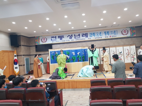 | 성년을 맞은 청소년들에게 사회인으로서의 책무를 일깨워주며 성인으로서의 자부심을 부여하기 위해 개최되는 2019년 성년의 날 기념 전통성년식이 5월 28일 경북보건대학교 목인관에서 개최됐다.